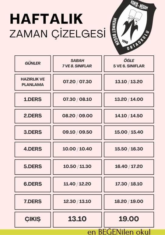 2025 - 2026 Eğitim Öğretim Yılı Ders Programları